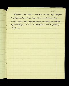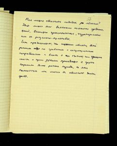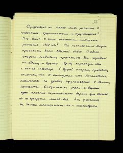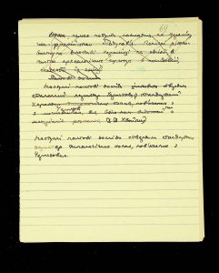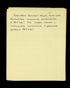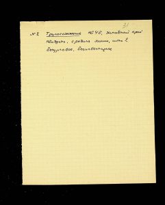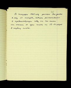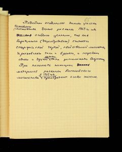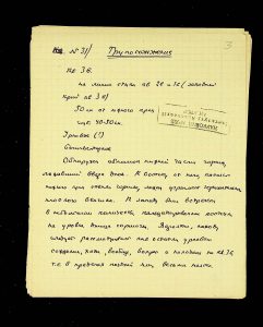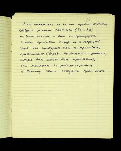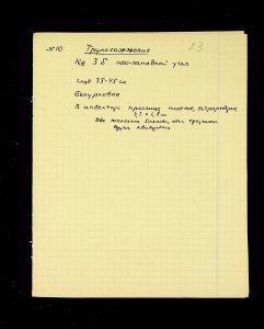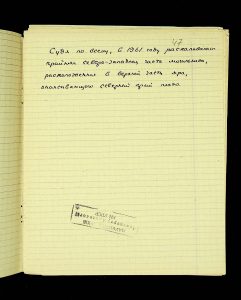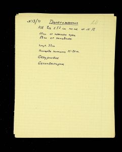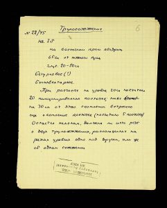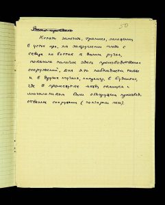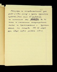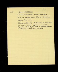 The following pages contain notes on “two-tier” burials at Chernyakhiv grave fields, first noted by S.S. Hamchenko at the burial ground in Maslovo. The Kosaniv site in 1962 revealed areas with only one tier—either cremation or inhumation. Based on the research from 1961 and 1962, V.P. Petrov believed it was possible to discuss the planigraphy of the burial ground and its boundaries (noting the absence of burials in two squares!). There are also records of production sites between the settlement and the grave field, using Kosaniv and Budesh as examples.