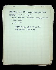 - Description: Notes on Prussian grammar. Samples of similar words in different languages (Lithuanian, Latin, Latvian, Greek, Gothic) according to Trautmann and Berneker