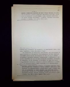 Description: Manuscript text (typewritten with author’s corrections) prepared by V. Petrov for the first volume of the collection of cultural monuments of the “urnfields.” It includes an introductory article; a section titled “Individual Items and Artifacts from Collections”; text “From the Editor” (autograph of V. P. Petrov and typewritten); table of contents for the first volume (typewritten with corrections by V. P. Petrov); lists of tables (autograph of V. P. Petrov); illustration tables.
