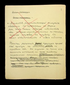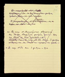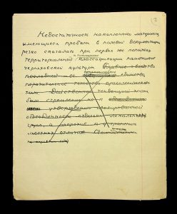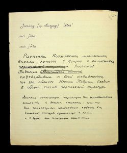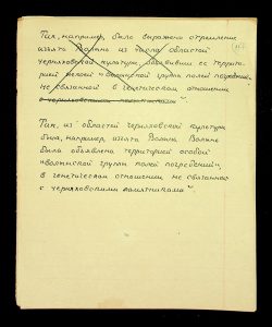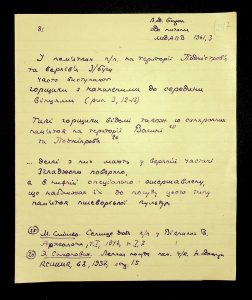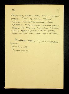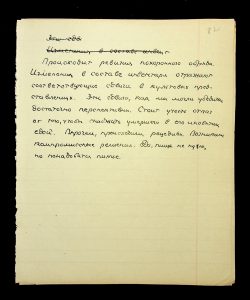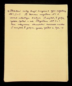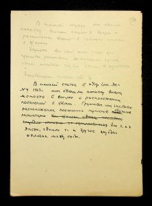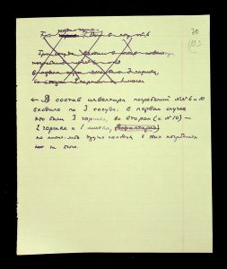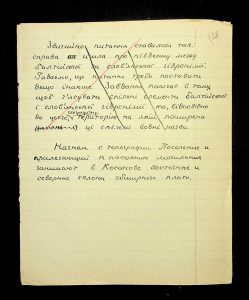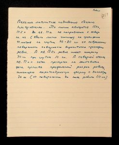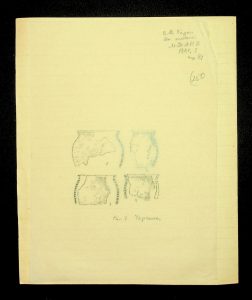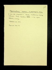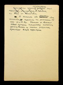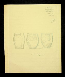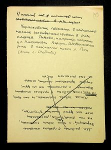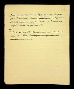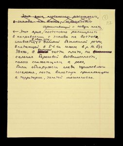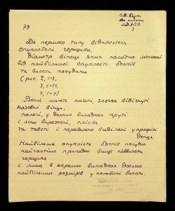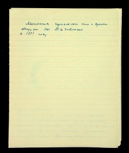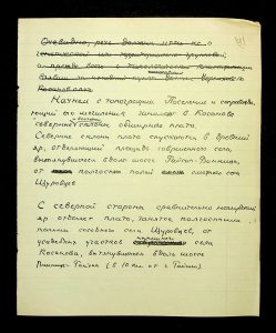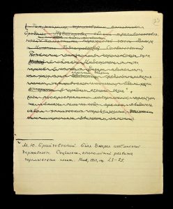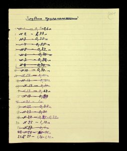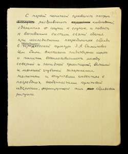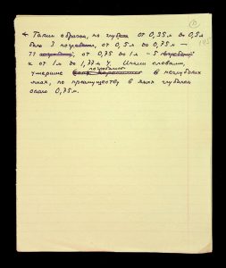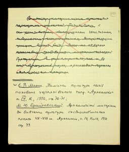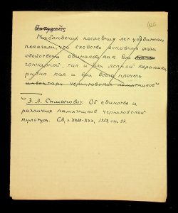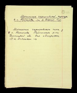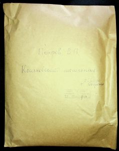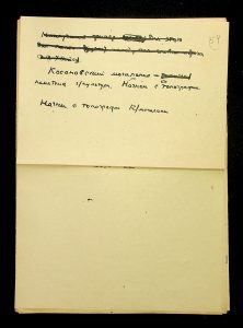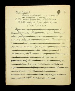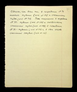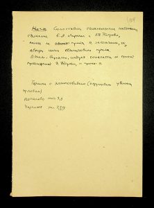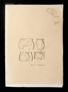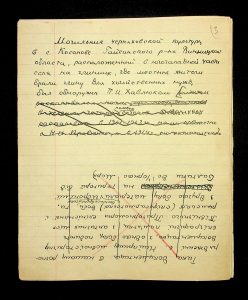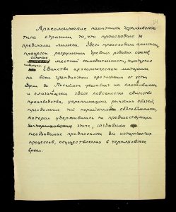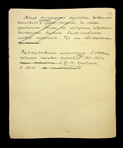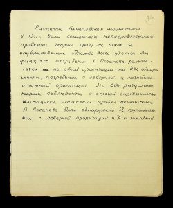 Description: A draft article on Kosaniv, written by V.P. Petrov (autograph), features two authorship variants: Petrov-Kravchenko “The Kosaniv grave field” (autograph of N.M. Kravchenko) and Petrov “The Kosaniv grave field (Based on Materials from Excavations by V.P. Petrov and N.M. Kravchenko)” (autograph of V.P. Petrov). The text includes tables and photographs of individual items. The edited text and photos were used in the article by N.M. Kravchenko (1967).