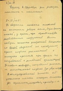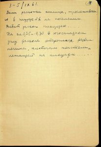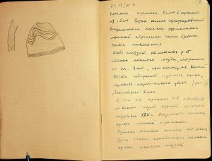 Description: Diary of Nadiia Kravchenko from the Report of the Kosaniv Detachment of the South-Buh Expedition on the Excavations of the Chernyakhiv Culture Grave Field in Kosanove Village in 1961.